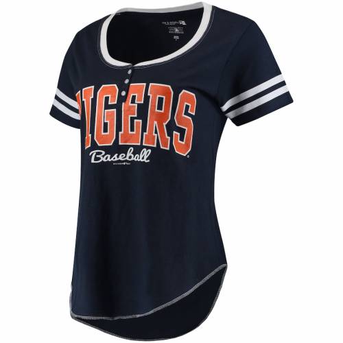 5TH & OCEAN BY NEW ERA デトロイト タイガース レディース ヘンリー Tシャツ レディースファッション トップス カットソー 【 Detroit Tigers 5th And Ocean By New Era Womens Slub Henley T-shirt - Navy/white 】
