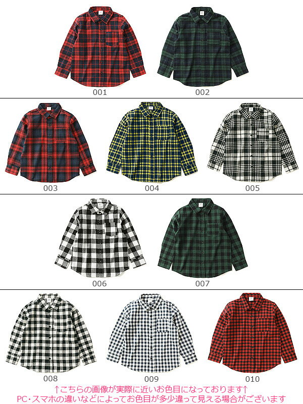 【アウトレット】チェック柄ネルシャツ 男の子 女の子 トップス 全10柄 100-160 子供服 キッズ ジュニア 子供 こども 子ども ダンス M1-1